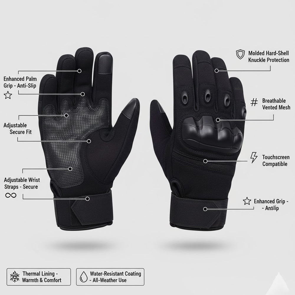 Men’s Motorcycle & Hunting Gloves – Synthetic Leather with Cut-Resistant Inner Protection (Tact-K)