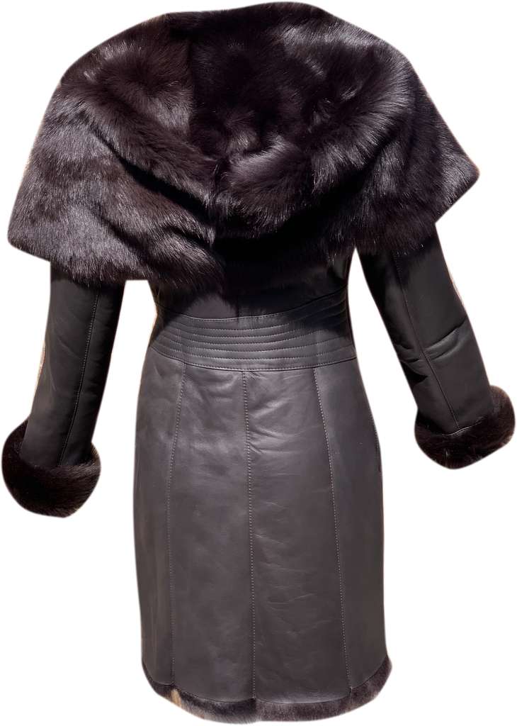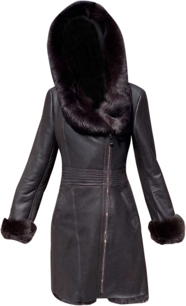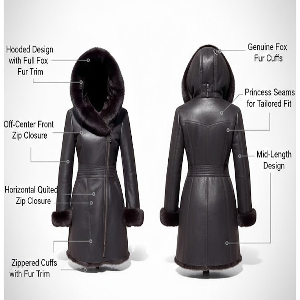 Women’s Genuine Sheepskin Shearling Fur Long Coat with Hood – Luxury Winter Outerwear (Kathy-Brown)