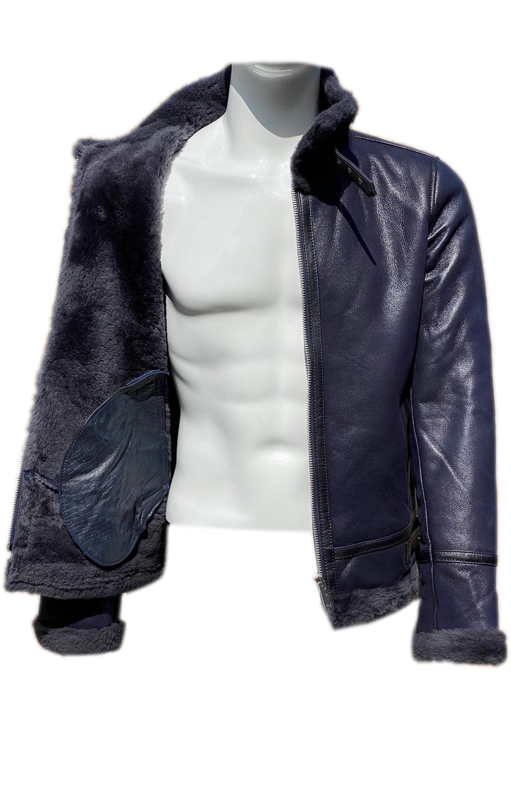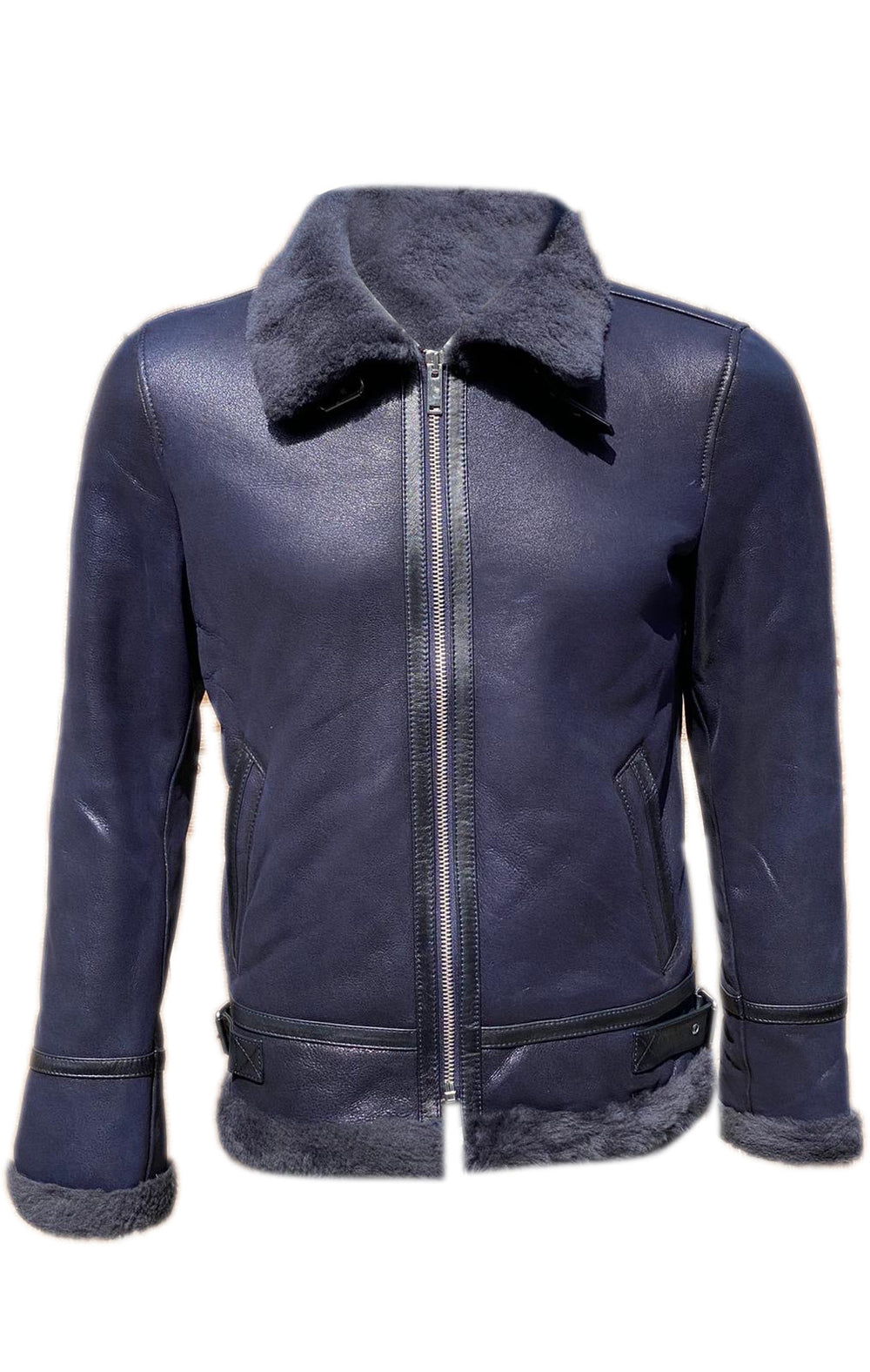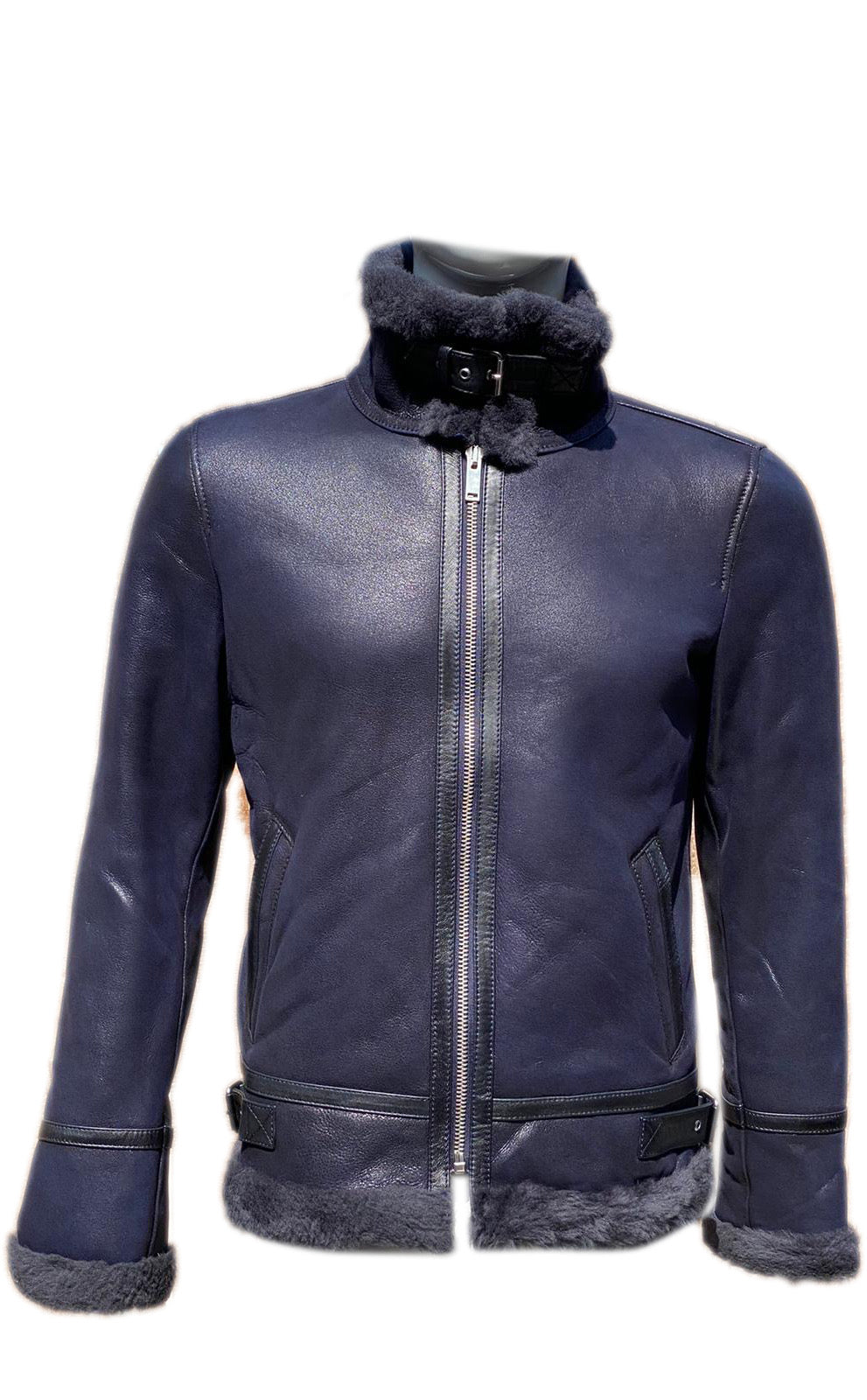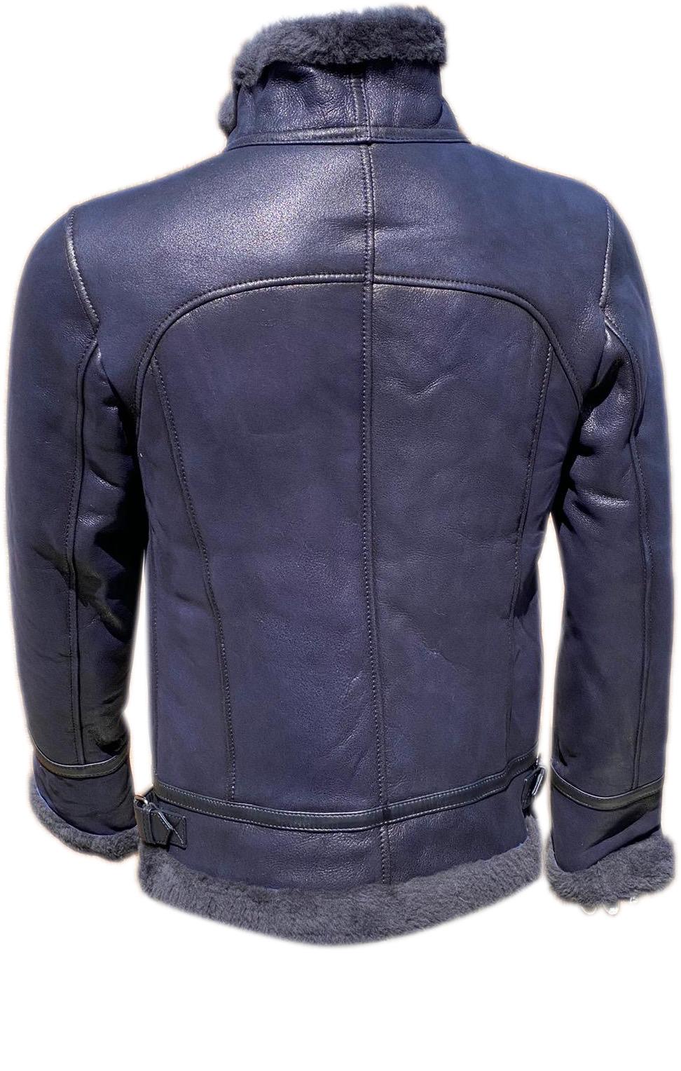 Men’s Real Sheepskin Shearling Fur Leather Jacket – Aviator Style with genuine Fur (Aviator-Blue)