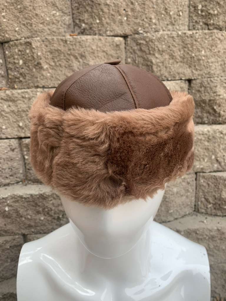Authentic Unisex Real Sheepskin Shearling Leather Beanie Hat with Fur – Warm Winter Aviator Ushanka hat (Beanie-Toscana)