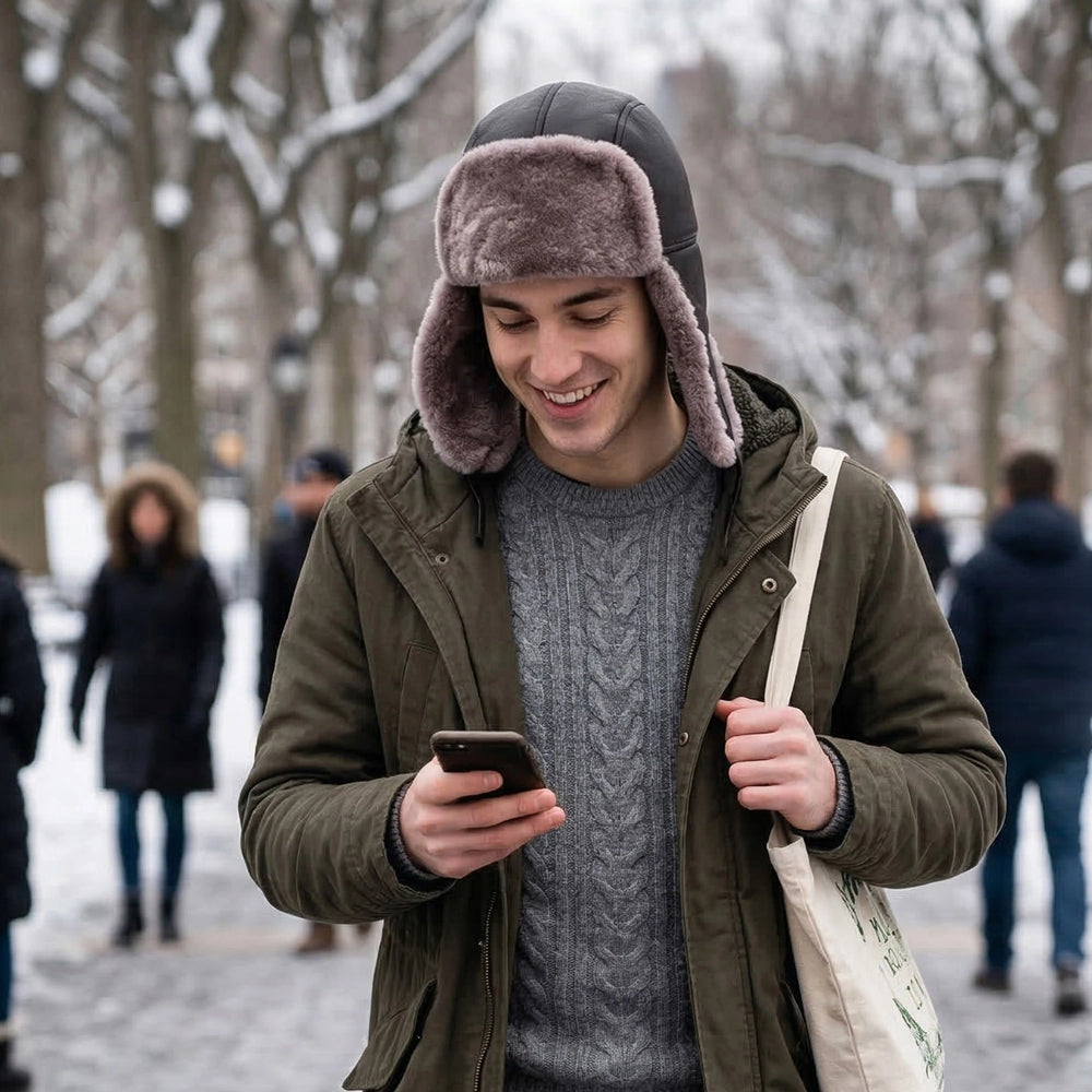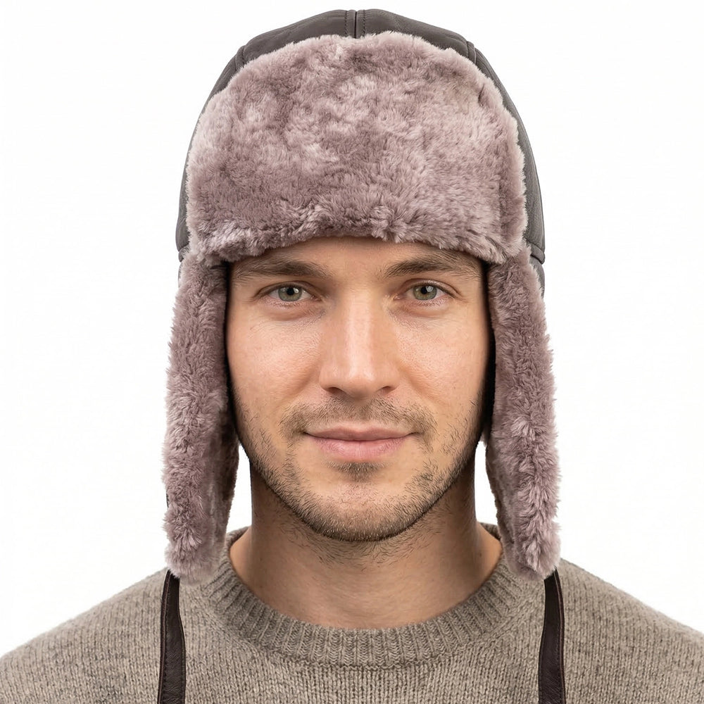 Authentic Unisex Real Sheepskin Shearling Leather Trapper Hat with Fur – Warm Winter Aviator Ushanka hat (Shanka-CP)