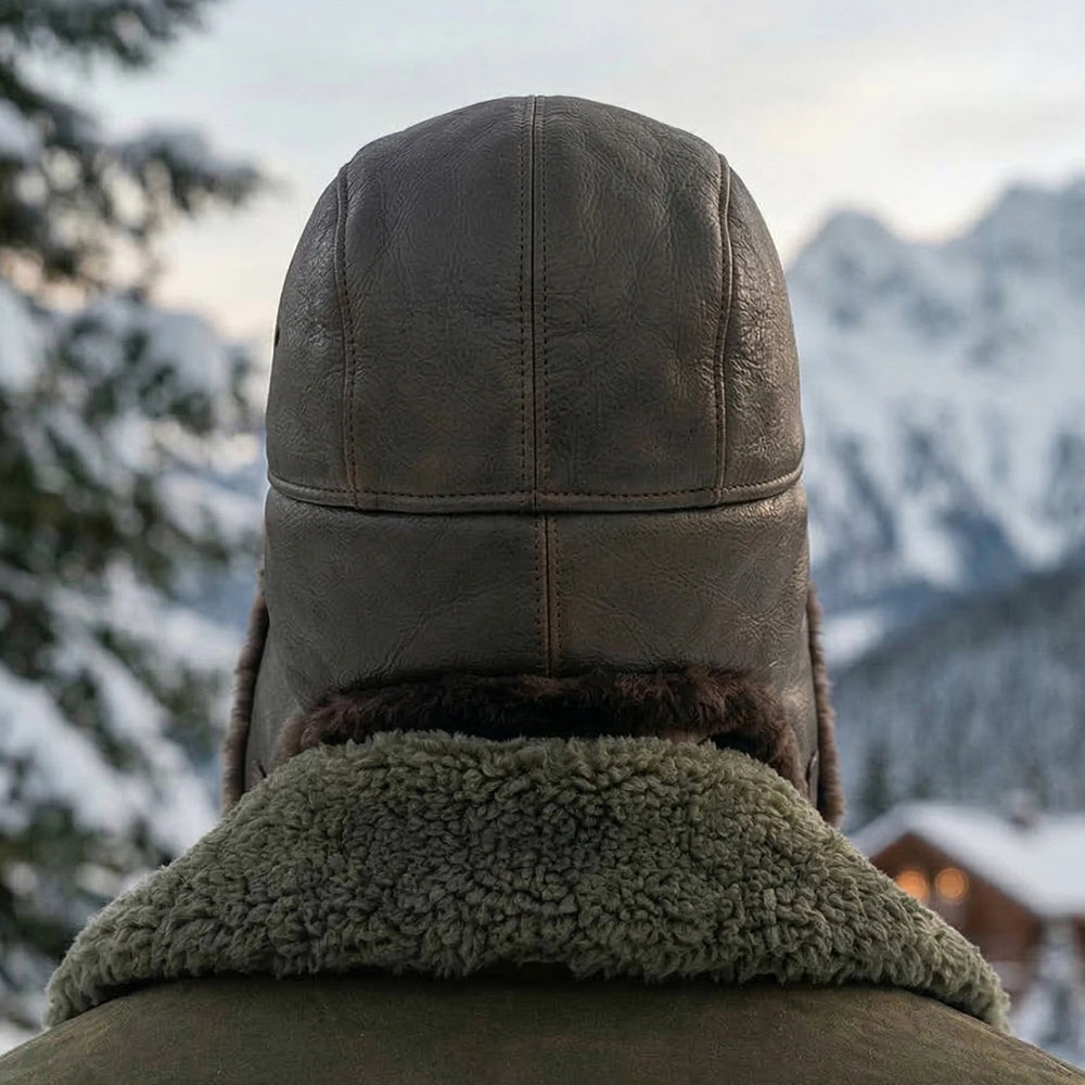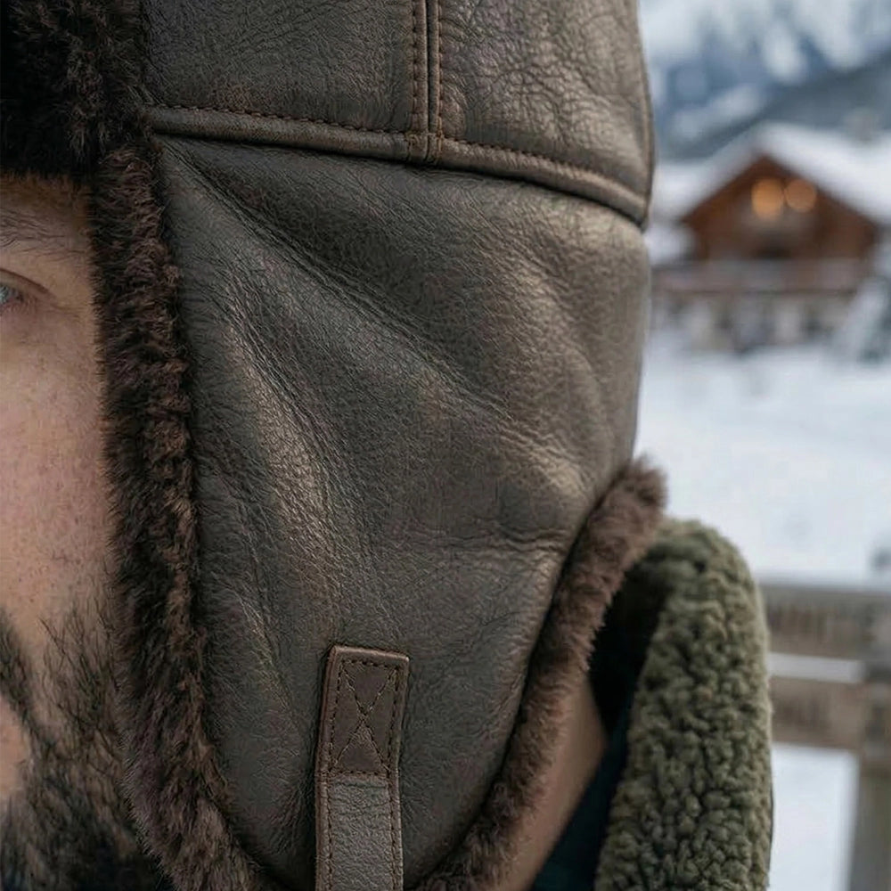 Authentic Unisex Real Sheepskin Shearling Leather Trapper Hat with Fur – Warm Winter Aviator Ushanka hat (Shanka-CB)